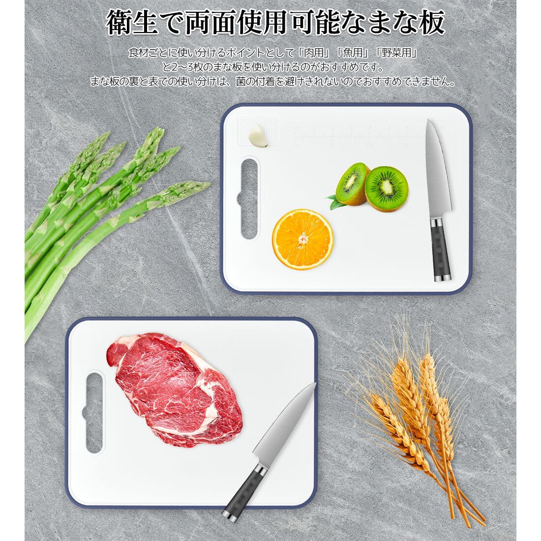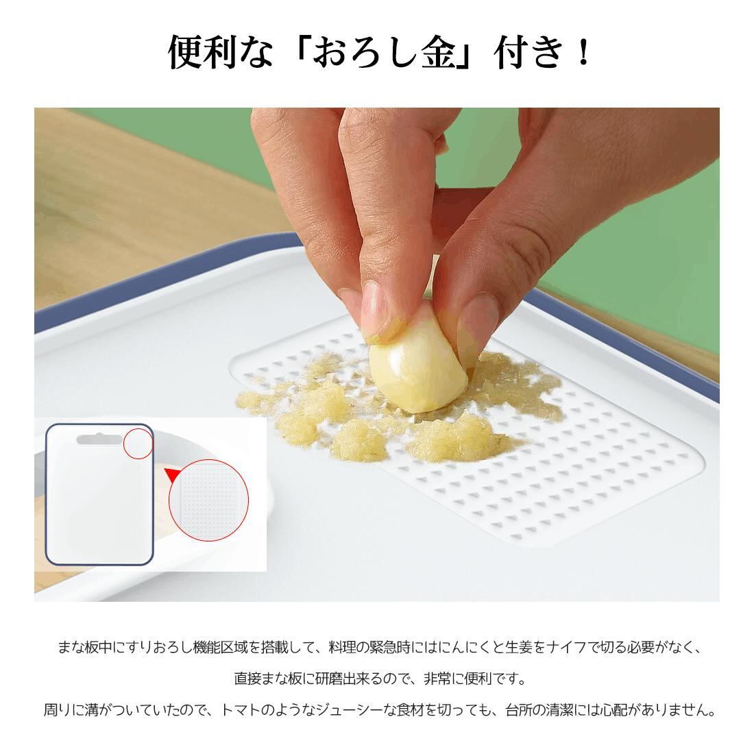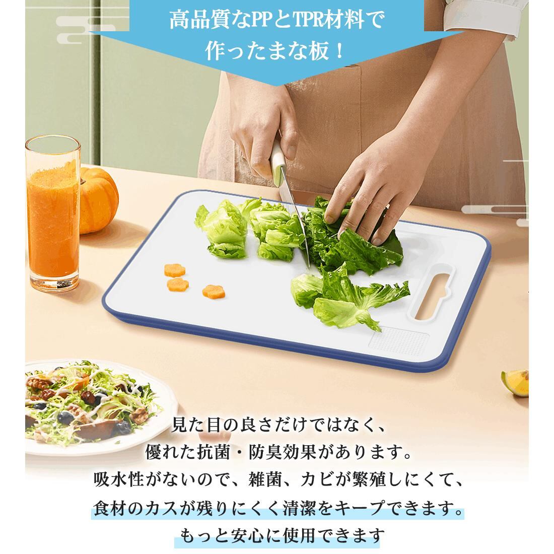 キッチンを快適にサポートするまな板は、料理の準備をよりスムーズにするための優れたアイテムです。このまな板は、両面使用可能なデザインで、食材によって使い分けることができ、料理の効率を高めます。さらに、滑り止め機能が付いているため、安定感を持って安心して使用できます。また、抗菌素材が使用されており、衛生面でも配慮されています。シンプルでスタイリッシュな外観は、キッチンのインテリアに調和し、機能性と美しさを兼ね備えた理想的な選択肢となることでしょう!